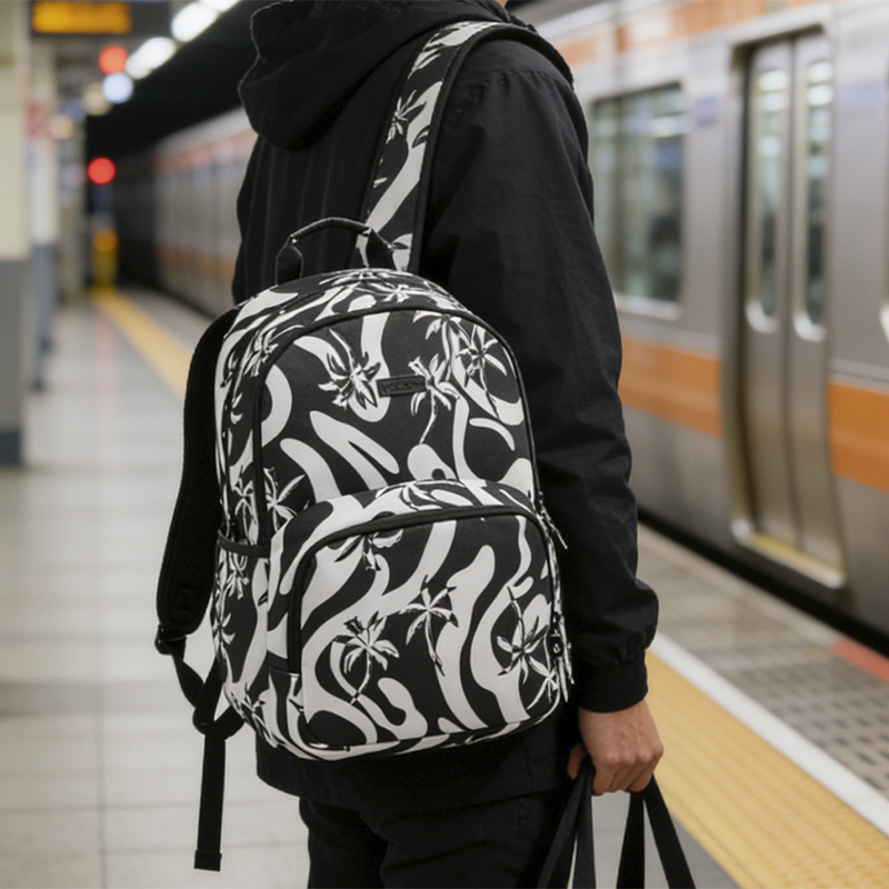 This black and white backpack combines style and functionality, designed for everyday use with three spacious compartments. Featuring a padded laptop sleeve, it's perfect for carrying tech and essentials, making it one of the best everyday carry backpacks.