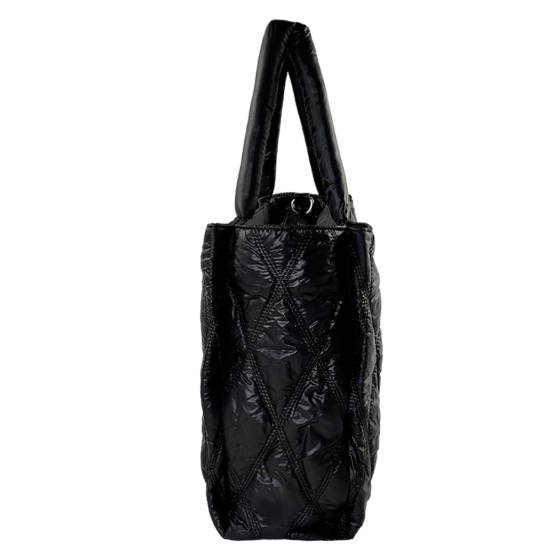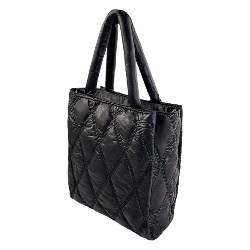 Обновите свой повседневный стиль с этой женской стеганой нейлоновой сумкой-тоут. Эта стеганая сумка-тоут отличается глянцевой отделкой и ромбовидной стежкой, что придаёт ей мягкую, объёмную текстуру. Толстые мягкие ручки обеспечивают удобный захват, а регулируемый съёмный плечевой ремень позволяет носить её как сумку-тоут, сумку через плечо или через плечо.