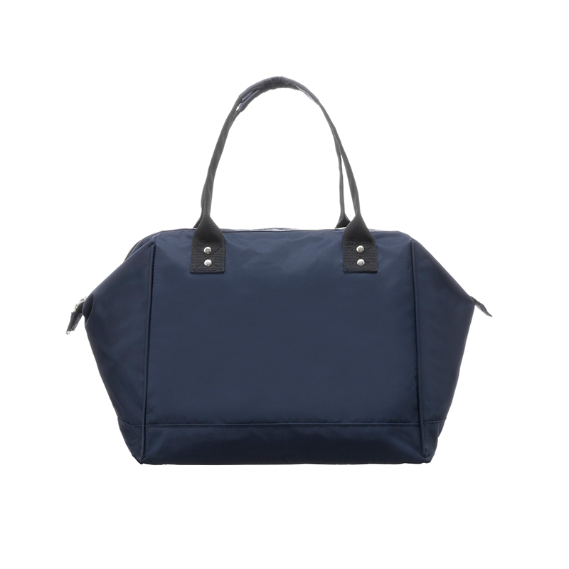 This lightweight and minimalist tote bag is crafted from 230D dark blue twill nylon and finished with bright silver nylon zippers for a clean, modern look. Designed with a compact silhouette yet impressive storage capacity, it transitions effortlessly from daily work use to travel or family outings. Its structured design and practical layout make it a versatile choice among contemporary tote handbags.