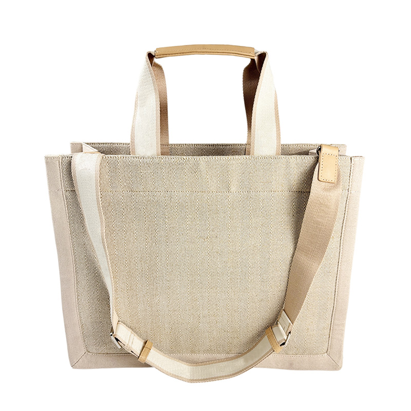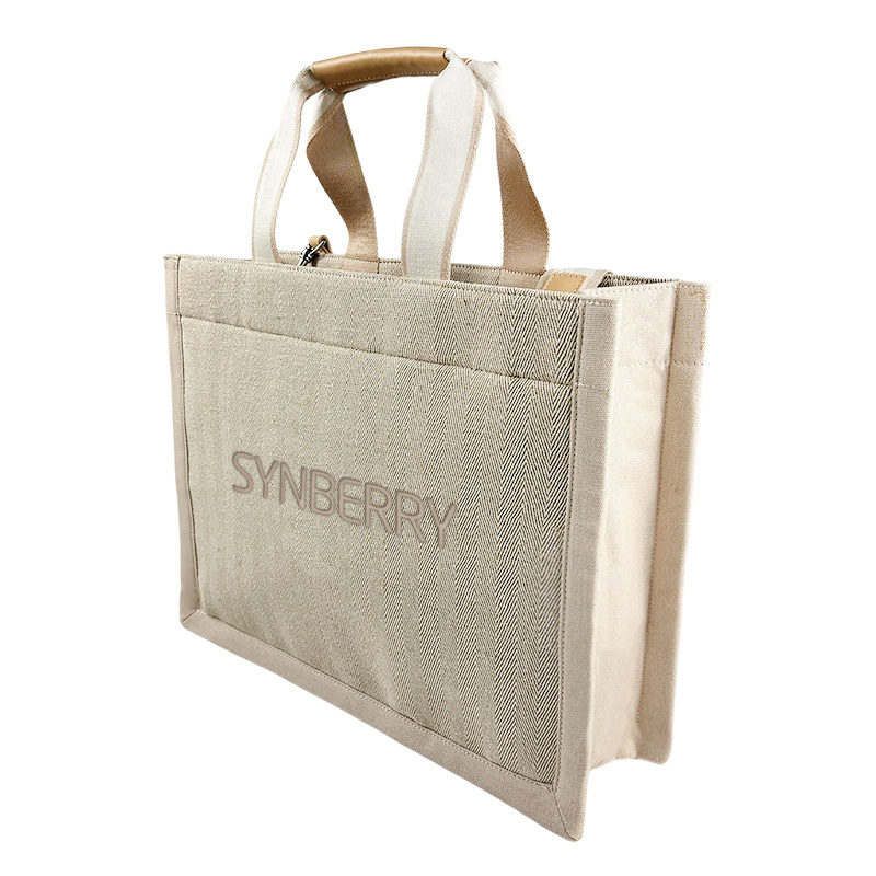 Эта сумка-тоут SY-WB251031, изготовленная из натурального льна с рисунком «елочка», имеет элегантный вышитый логотип спереди, прочную металлическую фурнитуру и регулируемый плечевой ремень. Она еще больше обогащает категорию повседневных сумок через плечо и женских сумок через плечо, предлагая экологически безопасный вариант для рынка и потребителей. Она идеально подходит для тех случаев, когда вы собираетесь на прогулку, едете в офис или входите в переговорную.