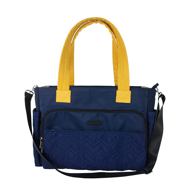 Кроме того, с левой и правой сторон основного отделения установлены металлические D-образные кольца, позволяющие легко прикрепить прилагаемый съемный плечевой ремень. Такая конструкция позволяет сумке плавно трансформироваться из сумки-тоут в сумку через плечо или сумку-мессенджер для мам, обеспечивая удобство использования без помощи рук.