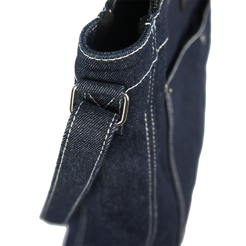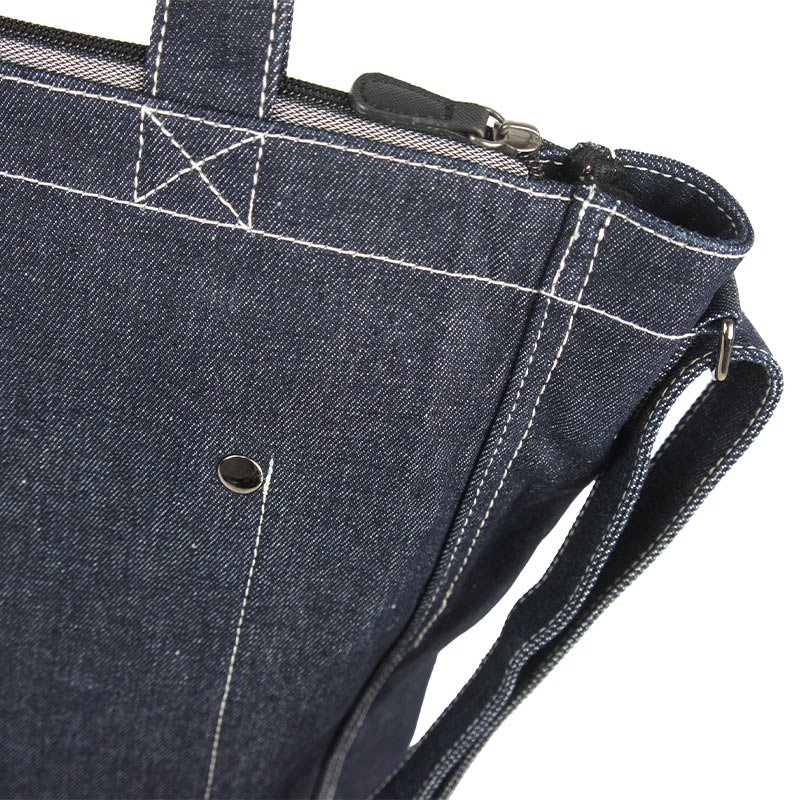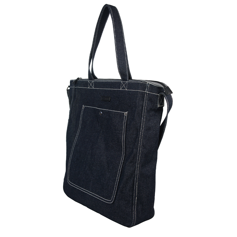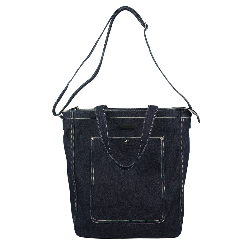 Functionally, this design combines the features of a shopper bag and one of the most practical large crossbody bags. The oversized body offers generous capacity, making it ideal for short trips, daily commuting, or casual travel. Beneath the leather logo patch on the front, a large exterior pocket—reminiscent of the back pocket of classic jeans—adds both visual identity and convenient storage. On the reverse side, exposed stitching details deliberately showcase the craftsmanship, reflecting an authentic denim spirit and highlighting our precise sewing techniques.